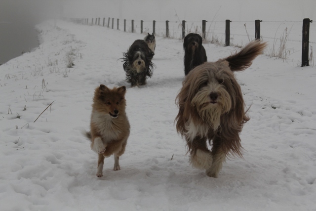 Honden foto's > Criz & de Shelties > Kinnon, Ush (helemaal achteraan) en de Beardies!