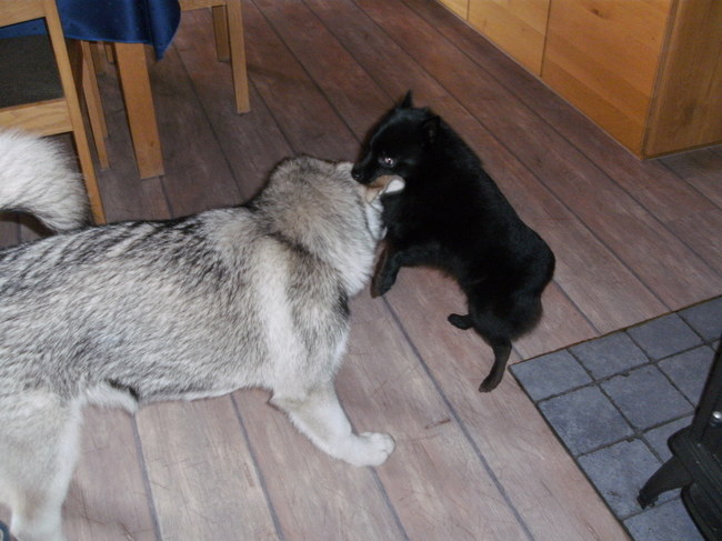 Honden foto's > Vicky > Antje die weer eens in Kanouks oor bijt tijdens het ravotten