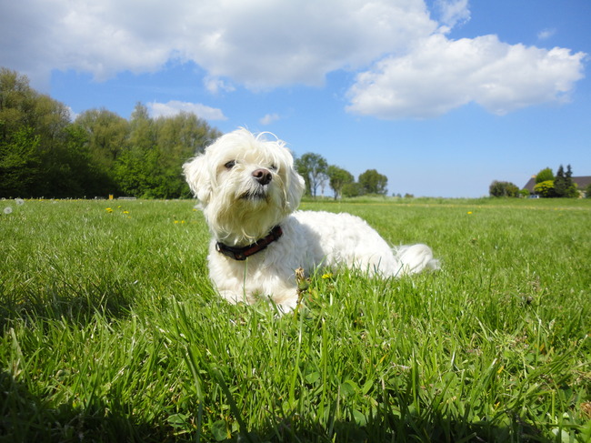 Hier ligt mijn hond Dusty heerlijk te genieten in de warme zon van Mariƫlla*Dusty&Baco