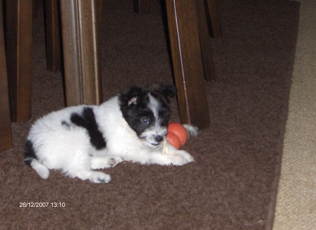 Honden foto's > Michelle & Max > Hier is maxje net 2 dagen bij ons. En is hij zelf 7 weken oud.