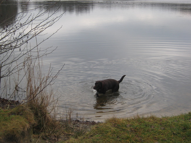 Honden foto's > Fiona en Rossi > Rossi in januari al in de visvijver Exloerkijl