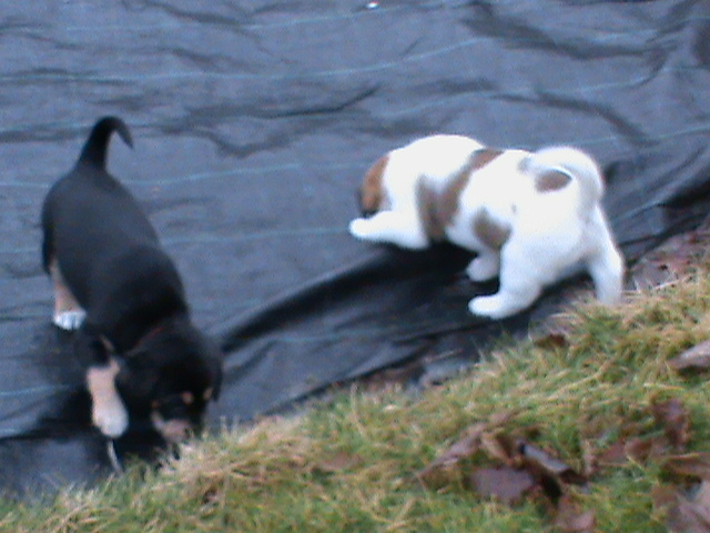 Honden foto's > Patrick - Darcy en Gera > Gera met nestgenoot - eerste keer buiten