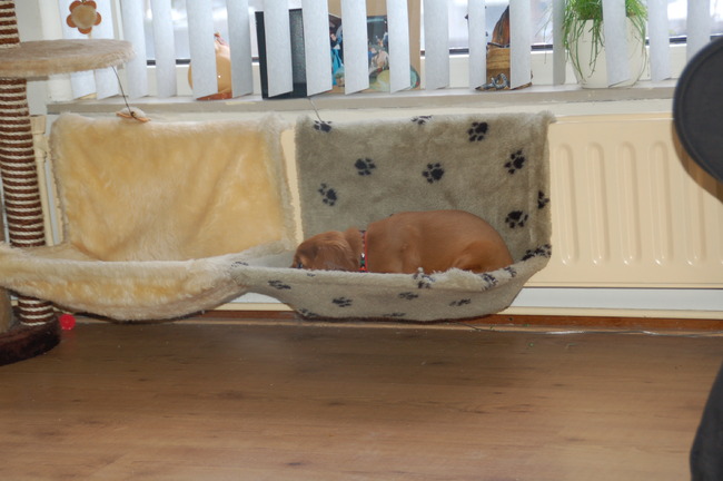 Honden foto's > Nolita. > Senna in katten hangmandje