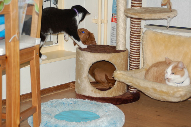 Honden foto's > Nolita. > Senna samen met de katten Doerak(rood) Bibi (zwart)