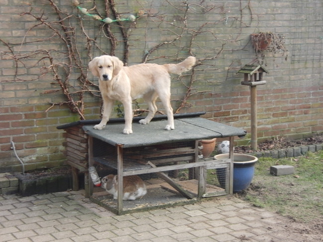 Honden foto's > Janneke > Gesprongen op het konijnenhok. :O Eerst was ze evengroot als het konijn.