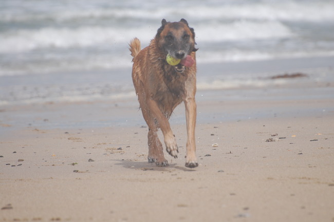 Honden foto's > Suske > Cas zijn grootste hobby: tennisballen op het strand
