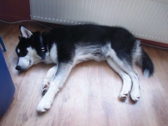 Honden foto's > Alaska Malamute > Na een lange wandeling, even slapen.