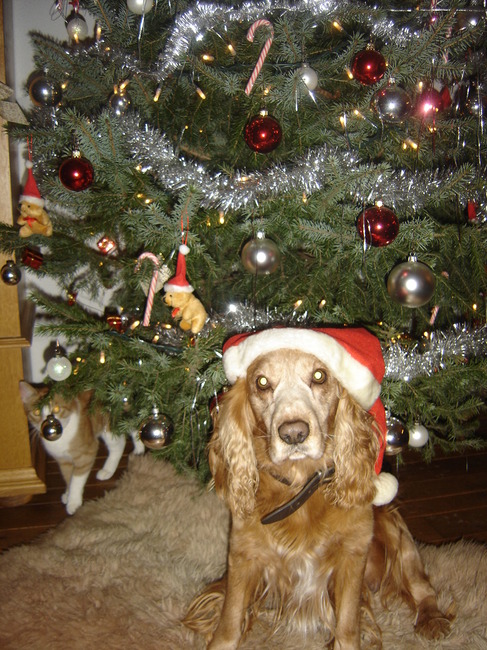 Honden foto's > Karina & Spikey > Zo moest ik op de Kerstkaart.