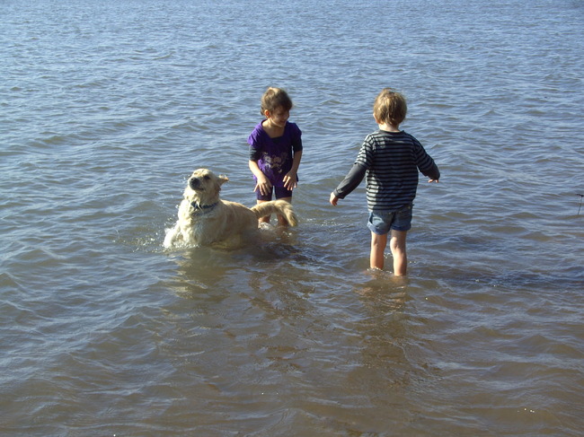 Honden foto's > Witte-Herder-en-Co > nu nog leren zwemmen