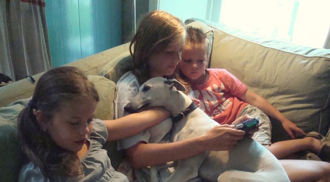 op de oude gameboy, wat ligt hij er lief bij he van Emma