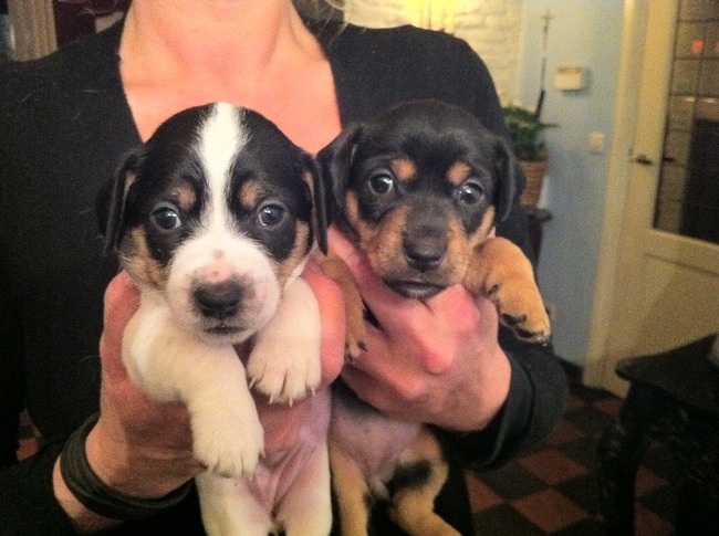 Honden foto's > Michèle & Zoë > Zoë samen met haar zusje. 4,5 week oud