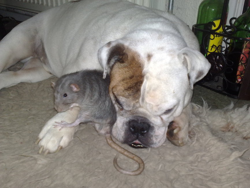 Honden foto's > Deborah + Djego, Mike & Lilo > Mike met onze rat Binky;)