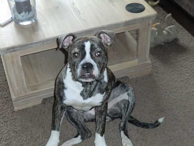 Honden foto's > Ashley > Ze had jeuk haha!! ze moes alleen nog gaan krabbel vandaar dat gek gezicht