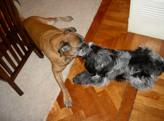 Honden foto's > Annemiek > Mickey met haar vriendje de cocker spaniel
