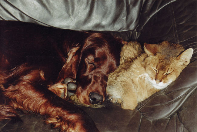 Honden foto's > of the Red Empire Ierse Setters > als kat en hond....dat gaat prima samen!