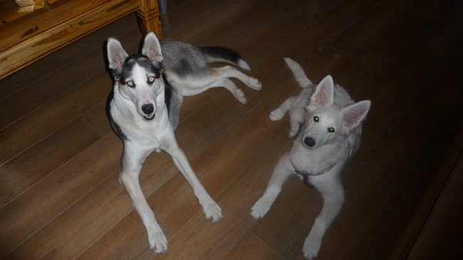 Honden foto's > Mandy en Nova > Nova en haar grote voorbeeld: Sky!