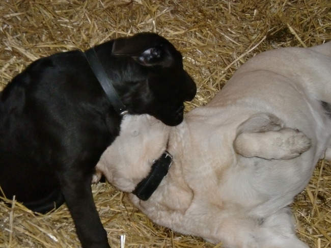 Honden foto's > koos > stoeien in de stal