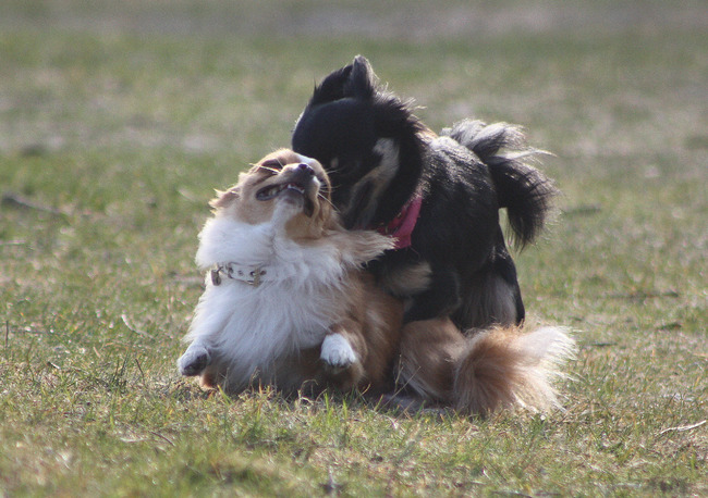 Honden foto's > Joyce&Jay > Jay zegt: Genade..ik kan niet tegen kietelen!!
