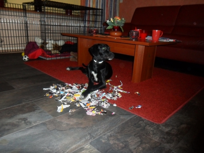 Honden foto's > Dani > hier is dani opzoek naar nog wat koopjes uit de folder