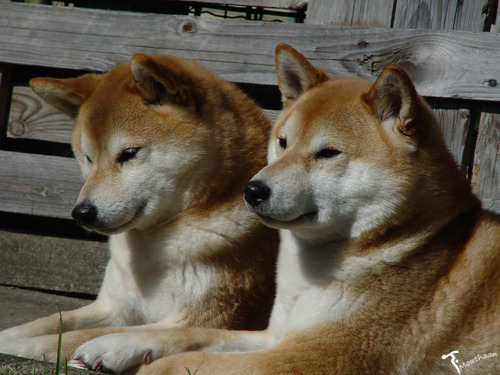 Honden foto's > Shiba fan > Moeder en dochter genieten samen van de lentezon