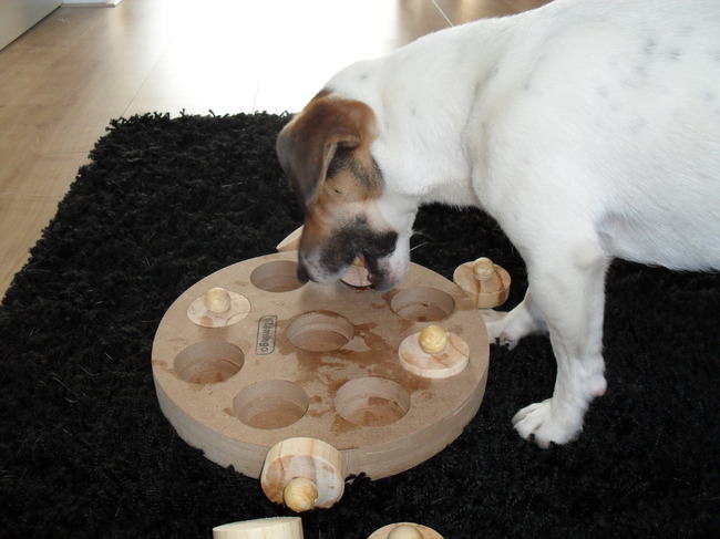 Honden foto's > Jin & Melo de tennisballenverzamelaar. > Heeeeee hoe kom ik bij het snoep..