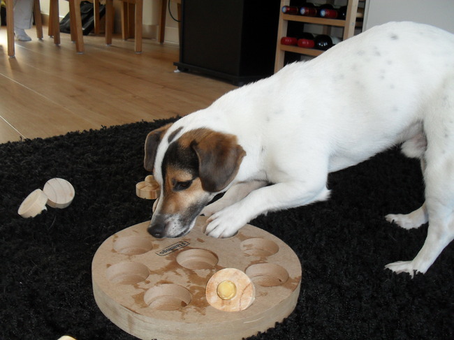 Honden foto's > Jin & Melo de tennisballenverzamelaar. > En dan nu snoepen!