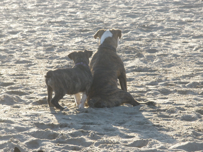 Honden foto's > angela > taro en kaya samen lekker relaxt in het zand