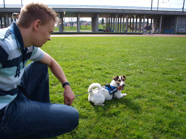 Honden foto's > Jin & Melo de tennisballenverzamelaar. > Heeeeej vrouwtje!