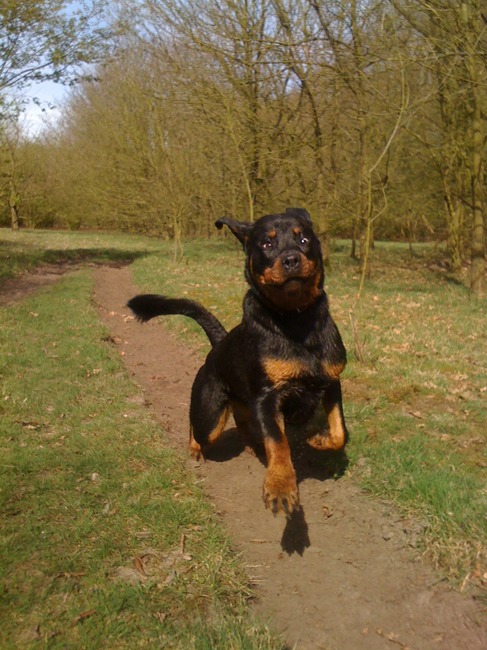 Honden foto's > Sanne & Rottweiler Bo > Gekke pup!