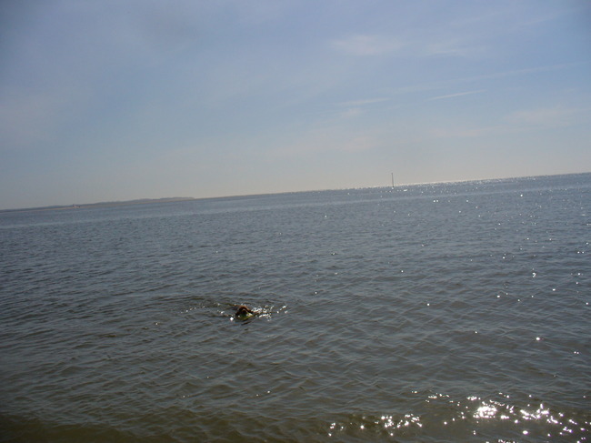 Honden foto's > Bianca & Tara > mijn eerste keer zwemmen in frankrijk