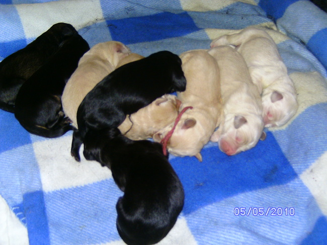Honden foto's > Sarah Brockmann > de 9 pups! 5 Wit, 2 zwart, 1 zwart met bruin en een wolf grijs.