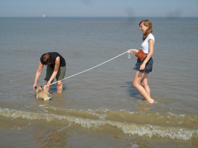 Een echte zwemmer zal het waarschijnlijk nooit worden :p van Hannah, Oscar en Koda