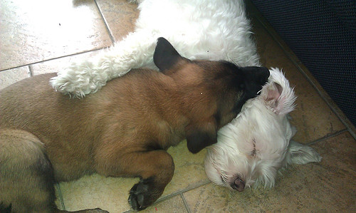 Honden foto's > Nicole Dekkers > Quitny en Snowy samen slapen