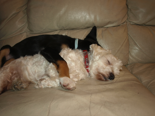 Honden foto's > Anne-Roos > Senna en Toby samen slapen.