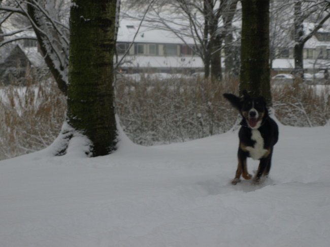 Honden foto's > Anne-Roos > En senna in de sneeuw.