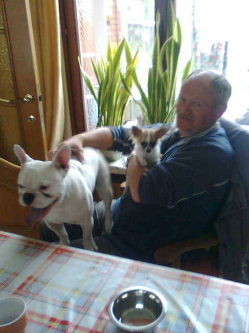 Honden foto's > Henri > samen met mijn speelkameraad(je) op schoot bij baasje