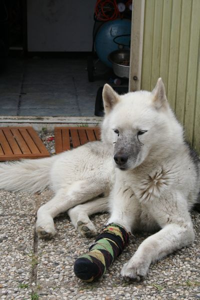 Honden foto's > ellis > nanook na het graven in de tuin vanmorgen