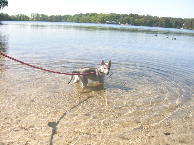 Honden foto's > natasja.. Quinta en Angel > Lekker pootje baden!