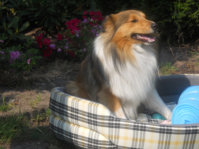 Honden foto's > Wim & Mexx > Even mijn nieuw mandje uitproberen.