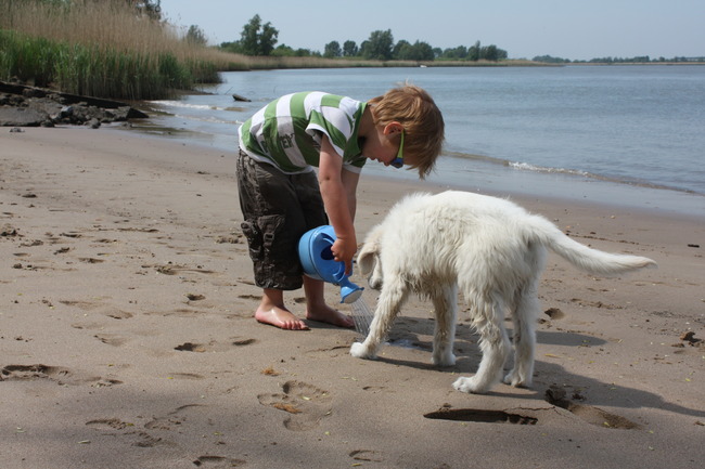 Honden foto's > Annemarie en Tristan > Wat ben je aan't doen baasje?