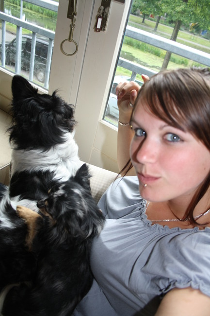 Honden foto's > Claudia, Andor en Deamon > Met zn 3tjes op de stoel hihi
