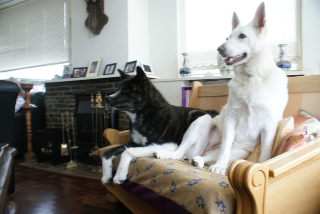 Honden foto's > Ramona & Sanko & Laila > Op het hondenbankje met z'n 2