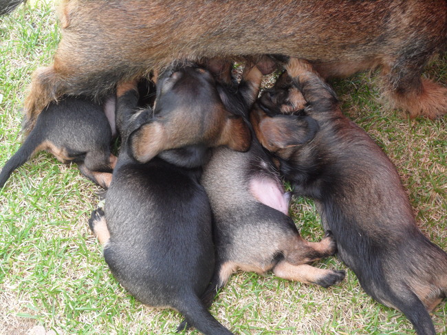 Honden foto's > Tobi en Abeltje > Nog eventjes drinken bij mama