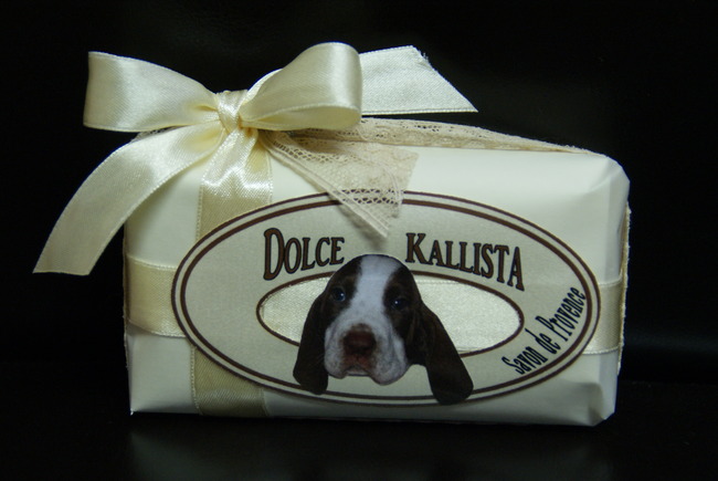 Honden foto's > Tamara > Cadeautje voor de fokster van Kallista,een zeep mooi verpakt ( zelf gemaakt )
