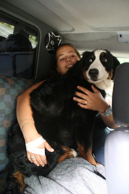 Honden foto's > jolanda > toch liever op schoot,want het is best eng in de auto