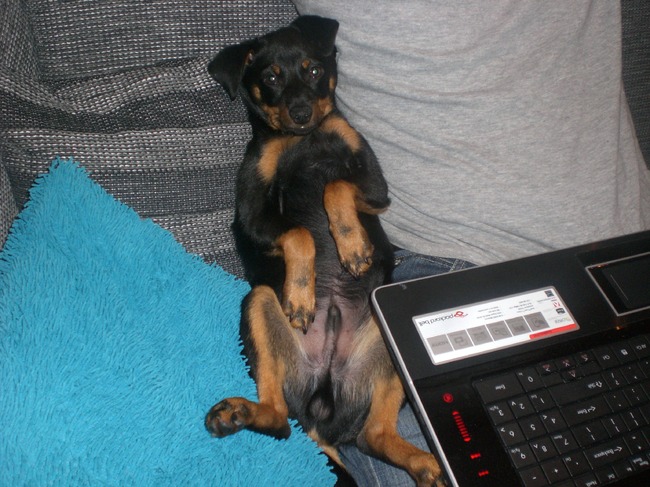 Honden foto's > Miranda en Dieco > ZO IK HANG HIER GOED.