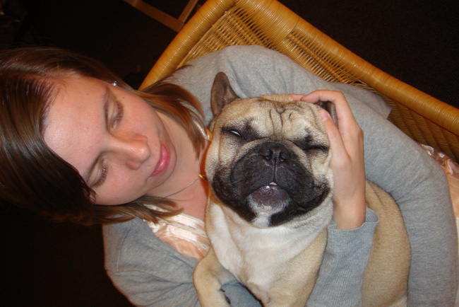 Honden foto's > Diablo & Maya > Lekker bij het vrouwtje in haar armen in slaap vallen