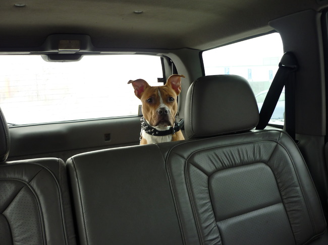 Honden foto's > kim&diablo&boy! > Diablo achterin de auto :-D