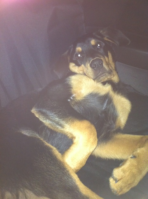 Hier is bikkel 4 maand oud, hij lag lekker 't slapen in de auto... van Lidia&Bikkel