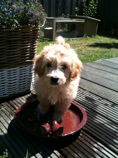 Honden foto's > Milo > Na het tuin omspitten netjes mijn pootjes wassen